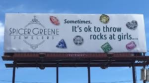 increasingly sexist billboard propaganda of Spicer Greene Jewelers in Asheville